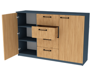 Wybór akcesoriów meblowych i okuć w każdym meblu jest równie ważny. W zależności od rodzaju komody jaką wybierzesz możesz decydować o tym jaki system prowadnic powinien znaleźć się w twojej szafce, jakie zawiasy powinny być w niej zamontowane tak aby nie tylko wyjątkowo się prezentowała ale również niezawodnie działała podczas ciągłego użytkowania. Dbamy o to aby opcji do wyboru było jak najwięcej, dlatego możesz również modyfikować położenie uchwytu na froncie, jego długość i rodzaj.